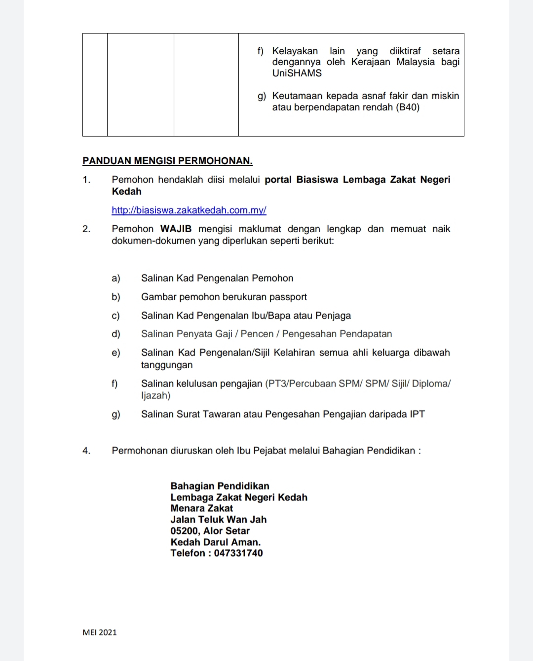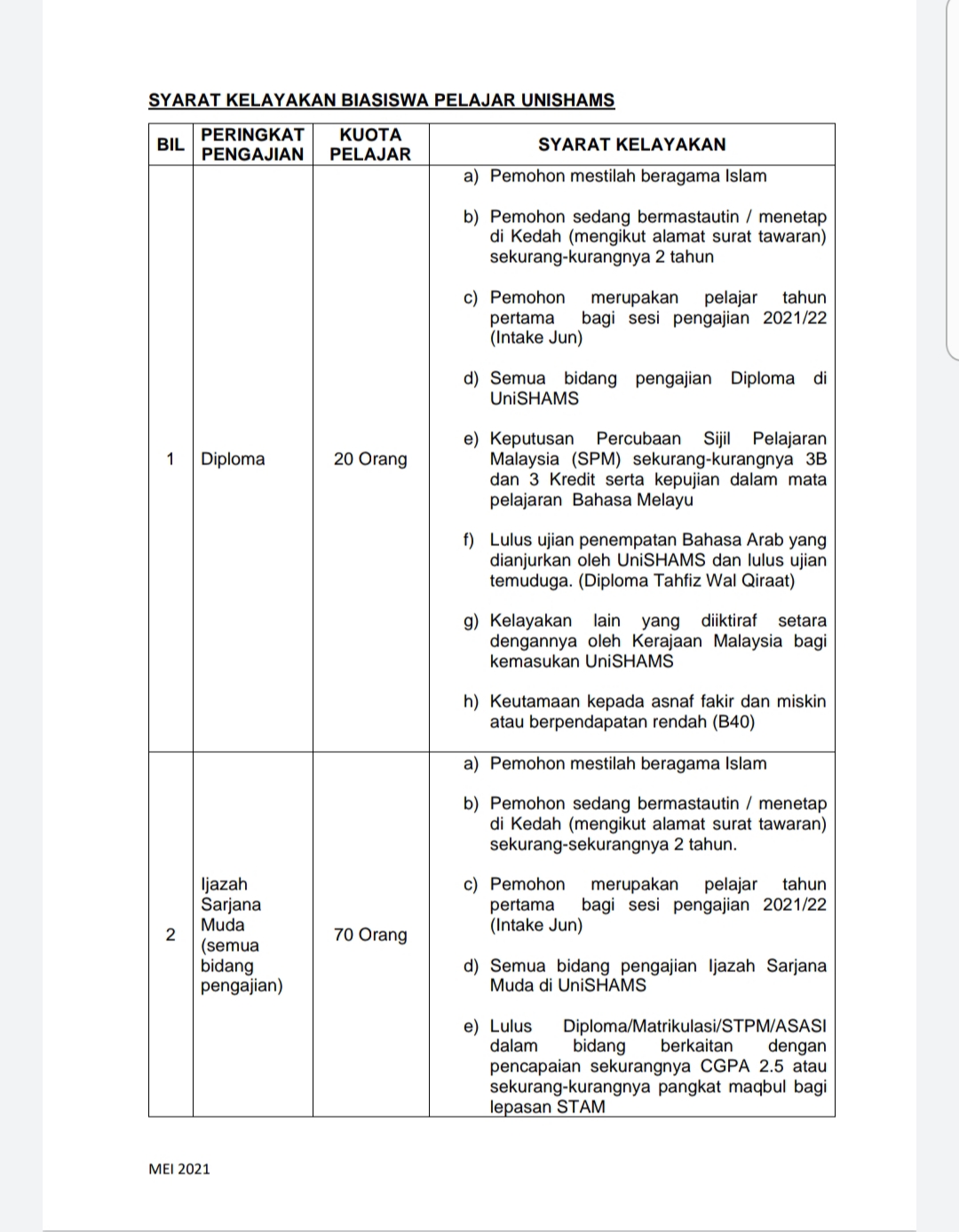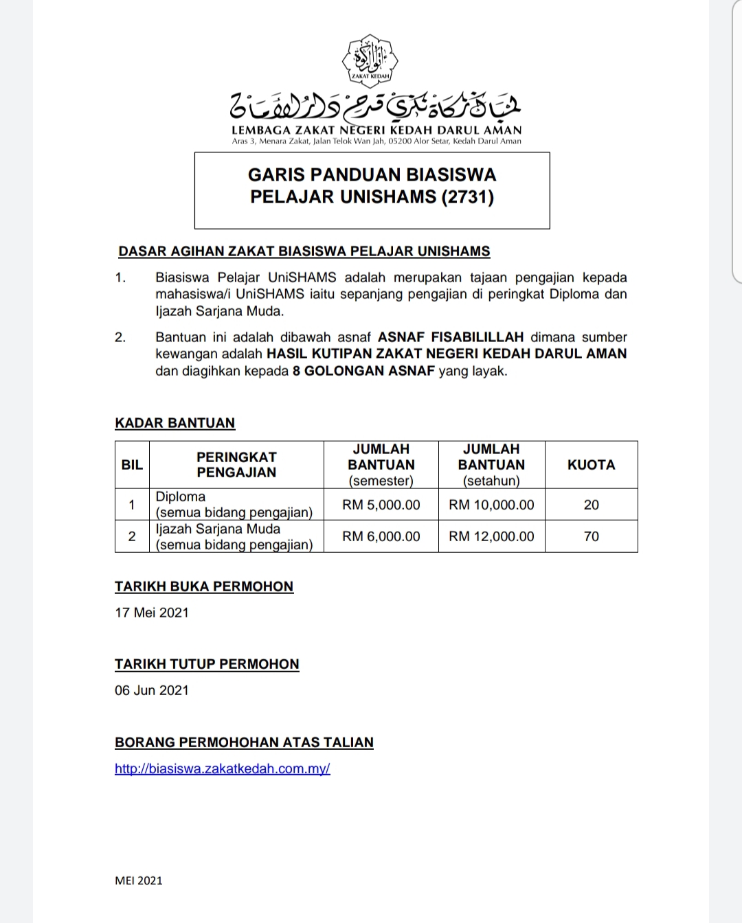 Garis Panduan Biasiswa Pelajar UniSHAMS